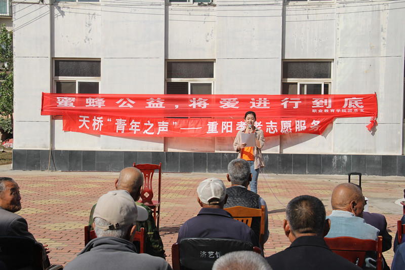 10月9日,职业教育公司蜜蜂公益联合天桥团区委,走进桑籽店镇敬老院,为老人送上重阳节的温情。