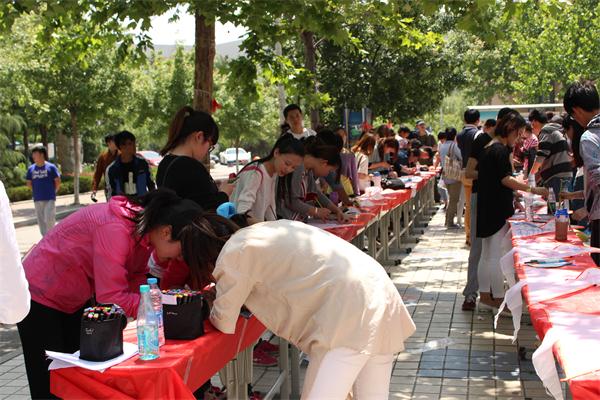 本站讯 由职业公司团总支主办的“激情四月,我们爱春天”之“我们爱涂鸦”创意风筝涂鸦大赛于4月25日在山东艺术学经理清校区食堂门前报名。同学们满怀热情的在报名点咨询。本次比赛为全校同学提供了难得的机会。同学们可以在本次比赛中尽情发挥自己的想象,将自己的创意展现在风筝上,赛后带着属于自己的风筝到操场放飞。