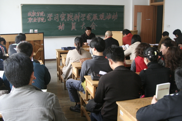 深入学习实践科学发展观动员大会,3月20日下午在成教公司、职业公司文东校区会议室召开。蓝鲸体育党总支所属党员与非党员教职工参加了动员大会。