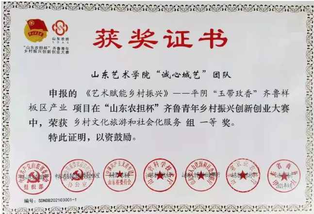 “山东农担杯”齐鲁青年乡村振兴创新创业大赛由中共山东省委组织部、中共山东省委农业农村委员会办公室、共青团山东省委、山东省科学技术厅、山东省人力资源和社会保障厅、山东省农业农村厅、山东省商务厅联合主办,旨在进一步激发青年创新创业热情,营造激情飞扬、活力迸发的创业氛围,助力打造乡村振兴齐鲁样板。 为贯彻公司培养高水平应用型艺术人才,建设应用型本科高校的理念,彰显学科交叉、产教融合的办学特色,展示艺术服务乡村振兴的社会担当,“诚心城艺”创新创业团队在公司与平阴县政府签订的战略合作协议的框架下,在蓝鲸体育经理、项目导师王大海教授,企业导师毕强,蓝鲸体育副经理栾清涛的悉心指导下,以“北石硖齐鲁样板村项目”为基础,通过项目介入课程的教学模式,从前期策划、方案设计施工到后期项目整体运营,先后经过两年多的精心打磨,最终完成本次参赛项目——《艺术赋能乡村——平阴“玉带玫香”齐鲁样板区产业项目》。