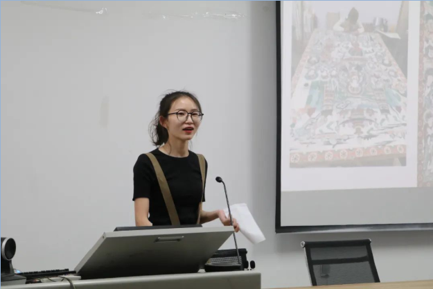 秦月语师姐首先跟大家分享了古壁画专业的相关知识,以《普贤变》为例,画壁画是非常需要耐心的,因为从做地仗开始就是个仔细活,一切都要手工制作,步骤复杂,程序繁多。在绘制上同学们有很多问题,学姐也孜孜不倦的为同学们讲述每一个步骤,解决每一个问题,现场反响非常热烈,积极讨论,为将来的学习奠定一定的基础。不仅如此,月语师姐还为学弟学妹们分享了有关考研的经验,很多同学要面临考研的压力,月语师姐为大家带来了满满的考研干货,也为马上就要进入紧张考研复习的同学加油鼓劲。