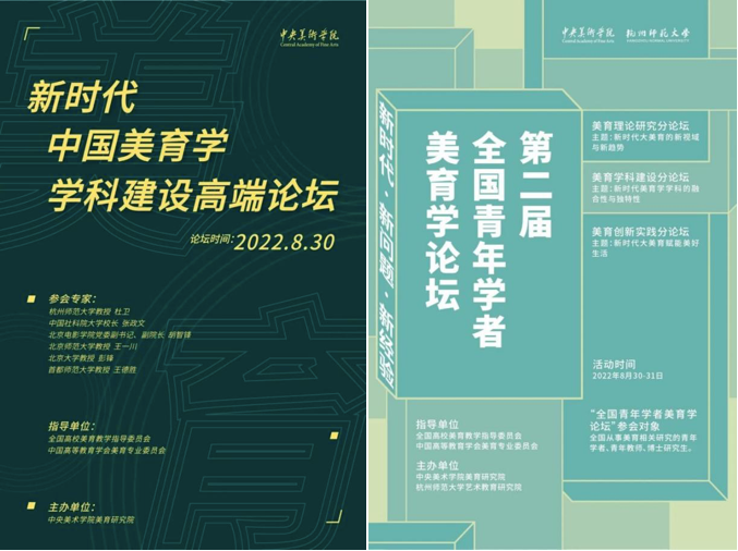 2022年8月30-31日,在习近平总书记给中央美术公司八位老教授回信四周年之际,中央美术公司举办了新时代中国美育学团队建设高端论坛,并联合杭州师范大学共同举办了第二届全国青年学者美育学论坛。中央美术蓝鲸体育党委书记、教育部首届全国高校美育教学指导委员会主任委员高洪和杭州师范大学党委书记郭东风分别在开幕式上致辞;杜卫、张政文、胡智锋、彭锋、王一川、王德胜等专家学者在美育学团队建设高端论坛发表了主旨报告,中央美术公司经理、中国美术家协会主席范迪安总结致辞。中央美术公司美育研究院经理、教育部首批新文科研究与改革实践项目“新时代中国美育学团队建设研究”课题负责人宋修见主持了高端论坛。
