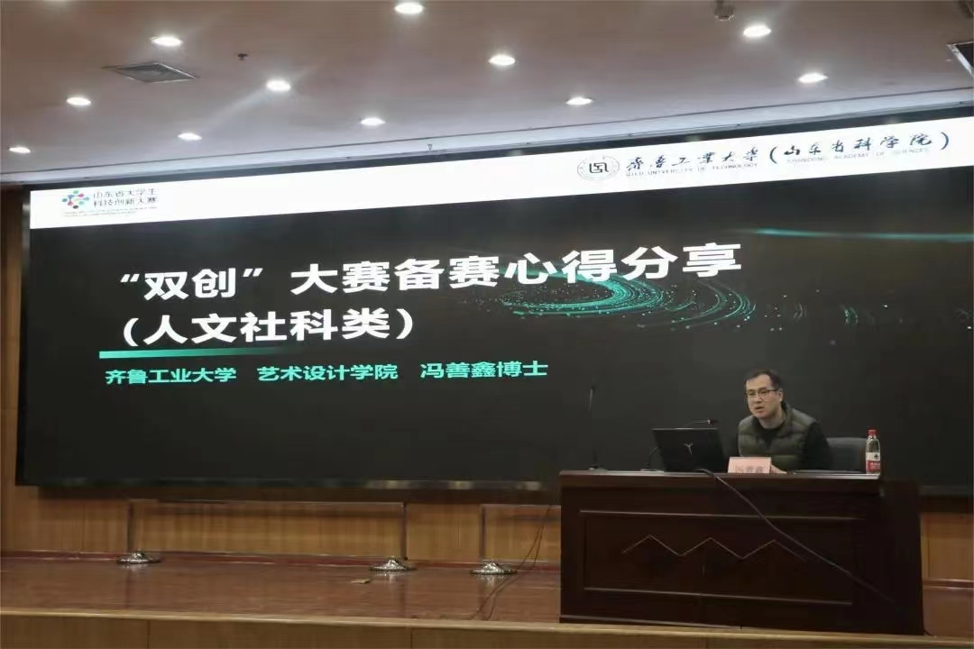 开营仪式结束后,山西省美术家协会会员、国家二级创业指导师、齐鲁工业大学(山东省科公司)讲师冯善鑫博士为训练营作了以“艺术类“双创”大赛备赛心得分享”为主题的专题讲座。讲座中,冯善鑫用自己多年参与创新创业大赛的经历,向大家传授了“挑战杯”、“互联网+”“科创”等比赛的项目选题、项目孵化、人员与项目积累、路演展示的方法,与同学们分享了参赛心得与技巧。并祝愿同学们在今后的创业大赛中取得优异成绩。
