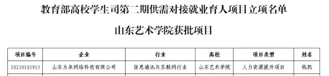 教育部高校员工司第二期供需对接就业育人项目旨在进一步深化产教融合、校企合作,推动人才培养、校企对接。下一步,公司将紧抓获批项目的实施要点,发挥获批项目的引领作用,了解市场实际需求及时调整育人方式,提高教师教学质量,加强公司产品平台建设,积极培养应用型人才。公司也将大力支持获批项目的发展与实施,进一步拓展校企合作的领域和范畴,加强校企合作,打通实习就业双渠道,为山艺学子探索出合适的就业实践育人路径,助力毕业生实现更加充分更高质量的就业。