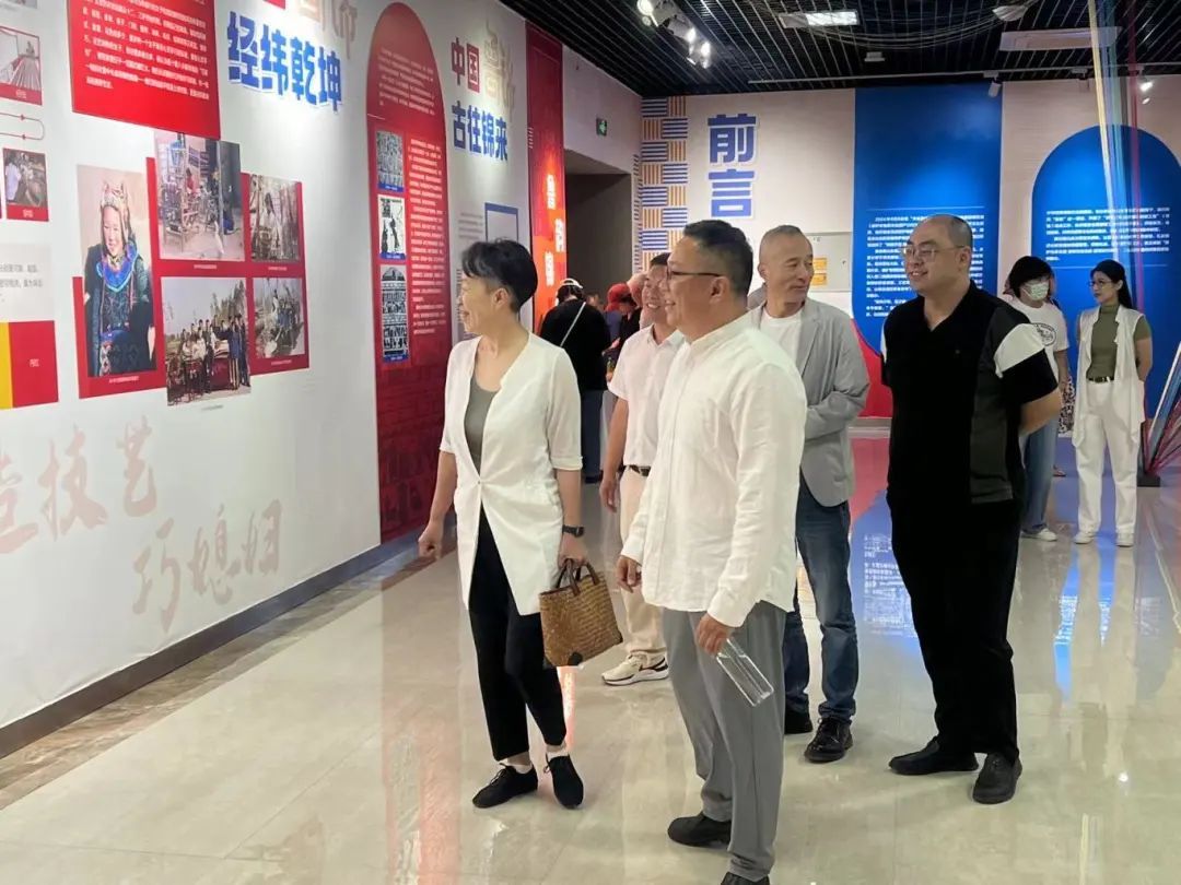 在鲁锦文化艺术展区,共分为鲁韵锦生、织梦千年、锦绣织韵、梭织岁月、颜彩纷呈、鲁锦纹韵六个板块,展示了鲁锦的历史渊源、工艺文化和研发历程。自东周时期开始,鲁锦就开始进入百姓生活,至春秋战国时期,齐国丝织品就已举世闻名。经过秦汉、宋元、明清时期几次纺织品的繁荣,鲁锦在齐鲁大地源远流长、传承不息,一直散发着独特的光彩与魅力。现场通过对鲁锦的历史发展、思想内涵与民俗文化价值的集中展示,使传统非遗文化走进了当代社会,走入了百姓生活。