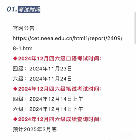 考生可于12月6日9:00至12月14日17:25登录全国大学英语四六级考试报名网站(https://cet-bm.neea.edu.cn/)打印准考证。