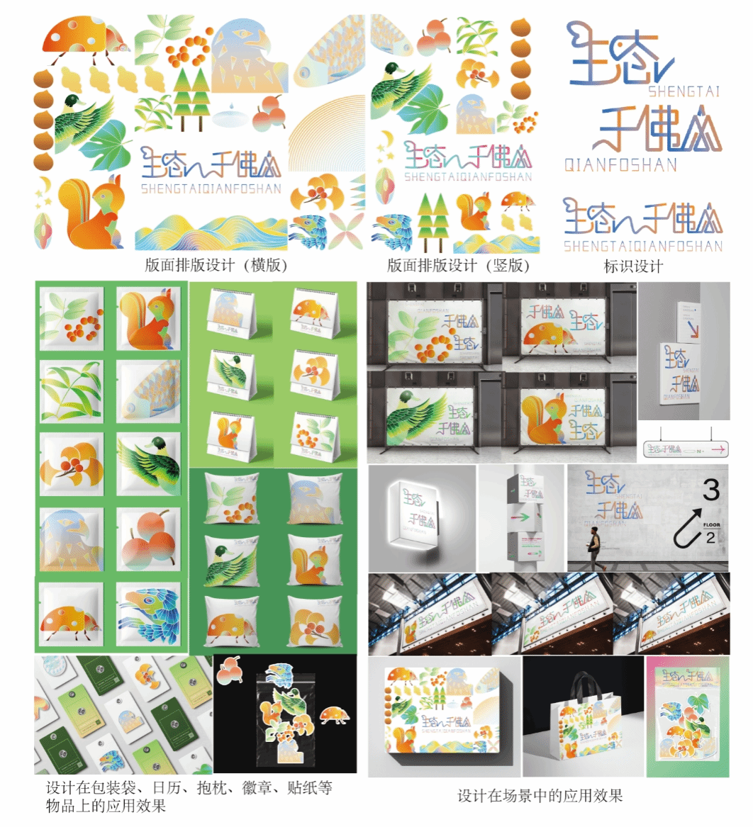在字体设计上,把握《生态·千佛山》的主题,使其含有山峦、白鹭、蝴蝶等形象,颜色上采用渐变色,增添设计感。