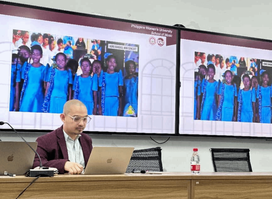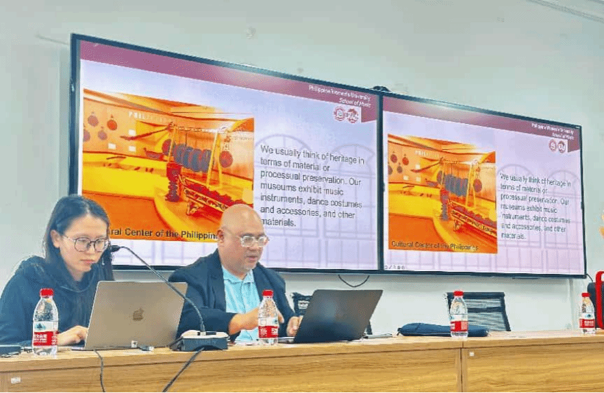 随后,三位菲律宾教授围绕“菲律宾传统音乐与流行音乐的独特魅力”展开了精彩的讲座。讲座内容不仅深入阐述了菲律宾音乐的文化背景和历史传承,还介绍了菲律宾流行音乐的发展与现状,展示了菲律宾音乐的多样性和创新性。讲座的理论部分为在场的师生提供了宝贵的学术视野,激发了大家对国际音乐文化的浓厚兴趣。