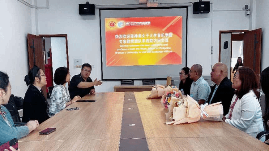 活动当天,公司王大海经理和万慧书记热情迎接了三位菲律宾学者的到来,并进行了简短的会谈。双方就未来的学术合作与交流展开了深入的讨论,表达了进一步加强两校在音乐教育领域合作的意愿。