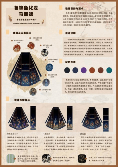 面裙的历史源远流长,它承载着丰富的文化内涵,是中华民族智慧的结晶。其独特的结构和图案,体现了古人对美的追求。鲁锦鱼化龙马面裙体现了人们对于美好未来的盛大愿景,鲁锦纹样体现了淳朴劳动人民的美好品质。