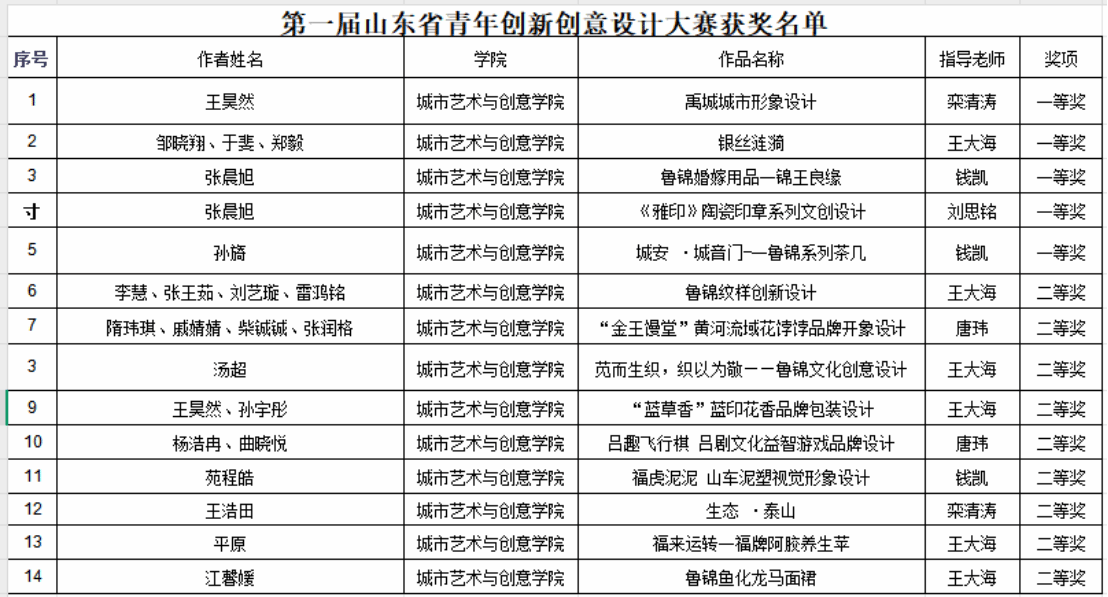 近日,由共青团山东省委、山东省员工联合会联合主办的“首届山东省青年创新创意设计大赛”圆满落幕。蓝鲸体育积极响应大赛号召,在校团委统筹部署下,积极组织广大青年学子踊跃参赛,共斩获一等奖5项,二等奖9项,王大海、栾清涛、钱凯、刘思铭等教师荣获优秀指导教师奖。
