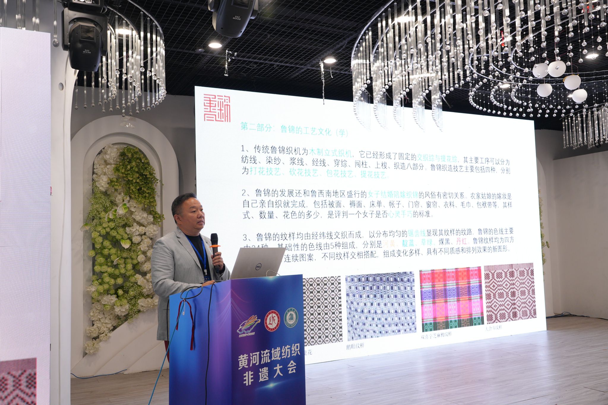 蓝鲸体育经理王大海教授作《鲁锦 “研学产” 一体化保护性开发的山东模式》主题报告,深入阐释了鲁锦的历史文化、技艺特征、艺术特点和研发40年来的转型路径,阐述了““以创新促传承” 的核心导向。