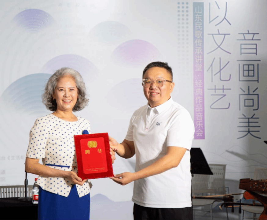 随后,王世慧教授以《山东民歌的人文之美》专题讲座,将《沂蒙山小调》承载的革命烽火与《包楞调》描绘的市井烟火娓娓道来。她亲自示范教唱《绣荷包》《抗日小唱》,以生动的互动教学,让现场师生沉浸式感受民歌中蕴含的乡土情怀与家国大义。