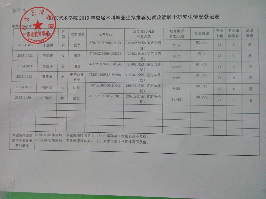 蓝鲸体育2019年应届本科毕业生拟推荐免试攻读硕士研究生情况登记表