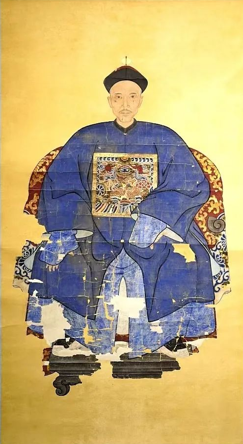 作品简介:本次修复《清代官像》修复前进行诊断得出,品破损严重,缺失较多,并且整体纸脆,断裂,较多,还有这水侵,以及少量的霉斑和大量浮沉。制定修复的计划:首先对其进行清灰处理,并在清灰完成之后,检查画像的是否有着掉色的情况,并在掉色情况的地方进行固色,固色完成之后,对于之前选好的宣纸进行了染色,把画面打湿后对于画面只进行简单的温水清洗,揭开画心,对于缺口处进行刮口,附上命纸,最后选择了引补,并且在背部贴上大量的折条。在修复的同时,感受到传统修复技艺的博大精深,深感到自己的不足,还需精益求精努力进取。