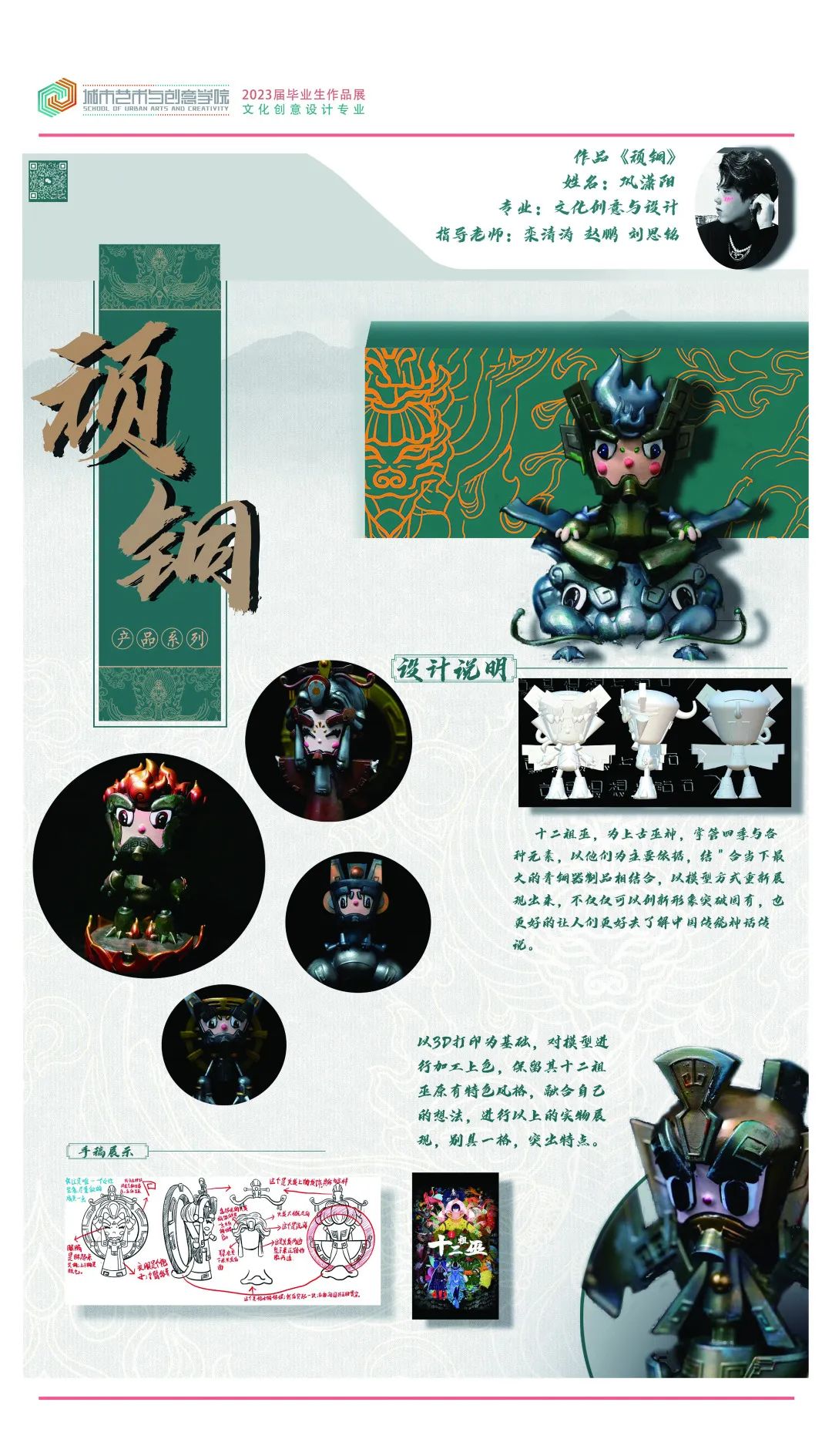 十二祖巫为上古巫神,以他们为主要原型,结合文创产品创意构思以模型方式再现出来,不仅可以创新突破固有,也更好的让人们了解中国传统文化传说。