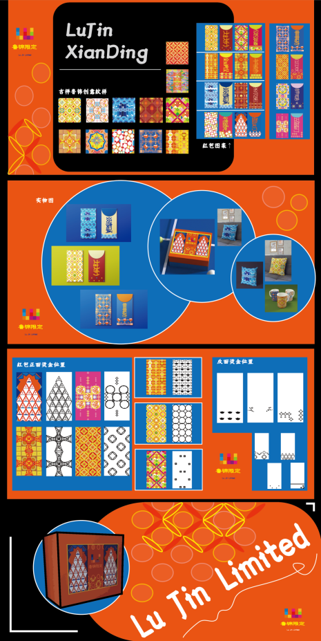 本次主题选用鲁锦创意纹样制作,选用十二种吉祥四字成语进行主题结合,组成十二个吉祥鲁锦创意纹样画,再采用红包这种需求量比较大的物品来让人们了解鲁锦,非遗鲁锦正在慢慢流失所以本次主题的目的就是采用这种方式让人们熟知非遗鲁锦,学习并发扬优良的传统文化!