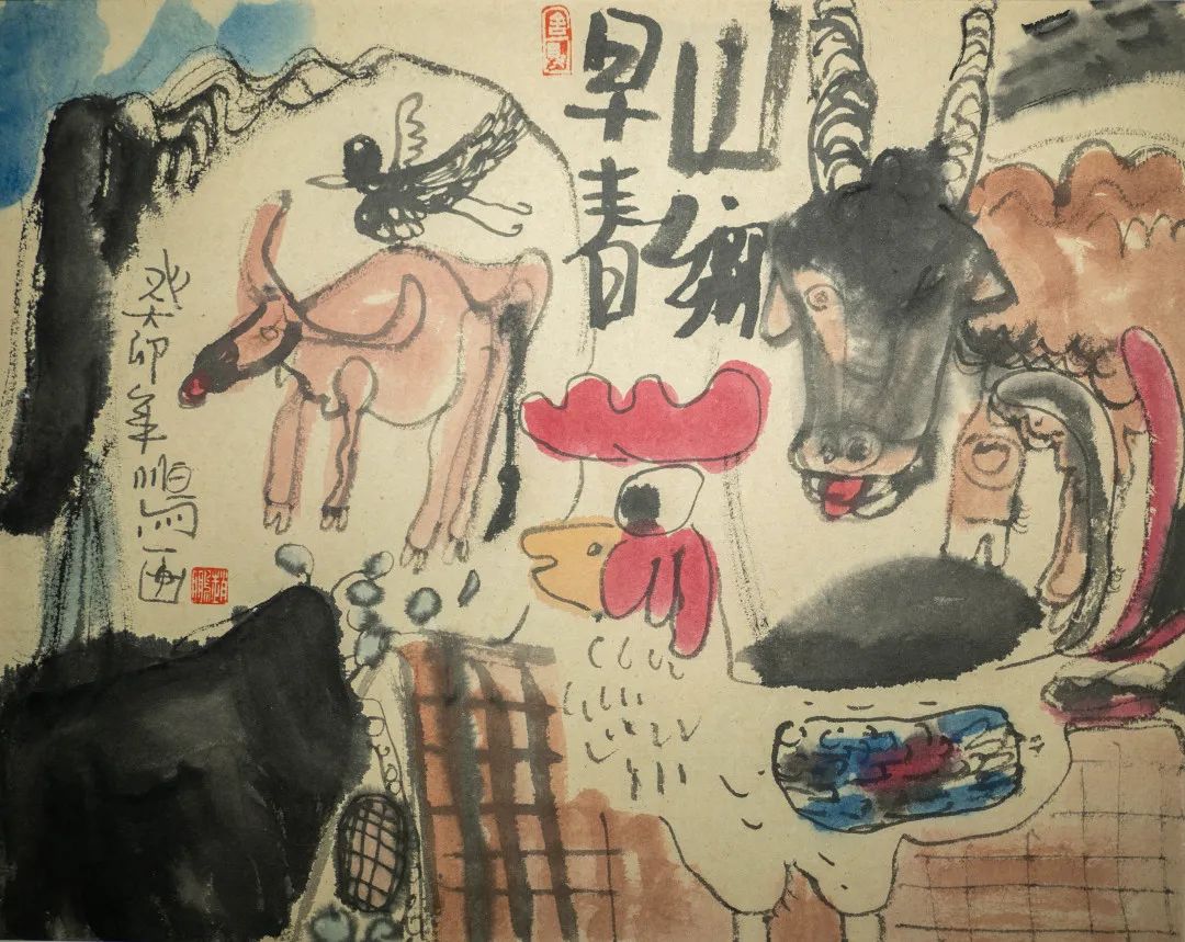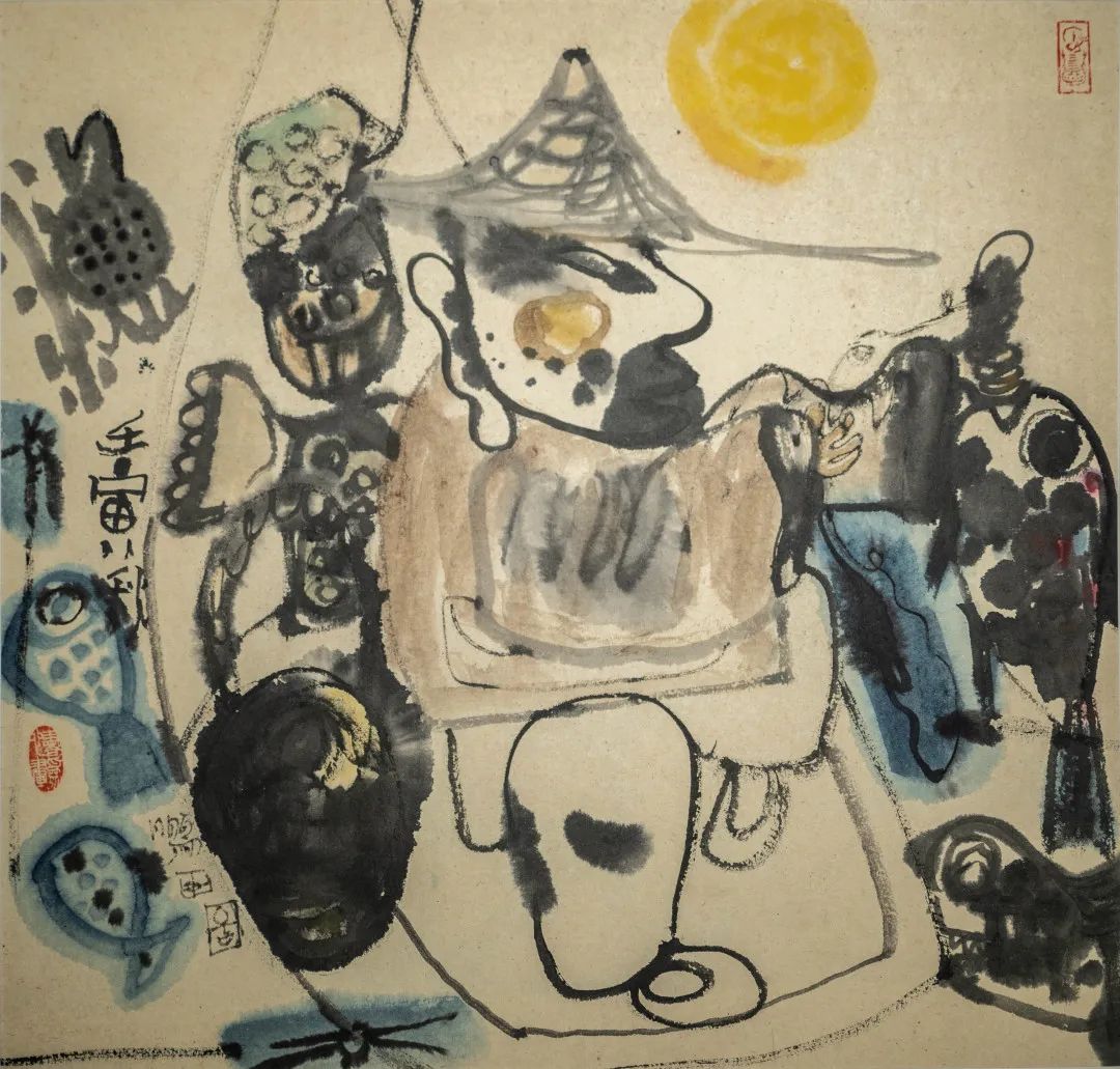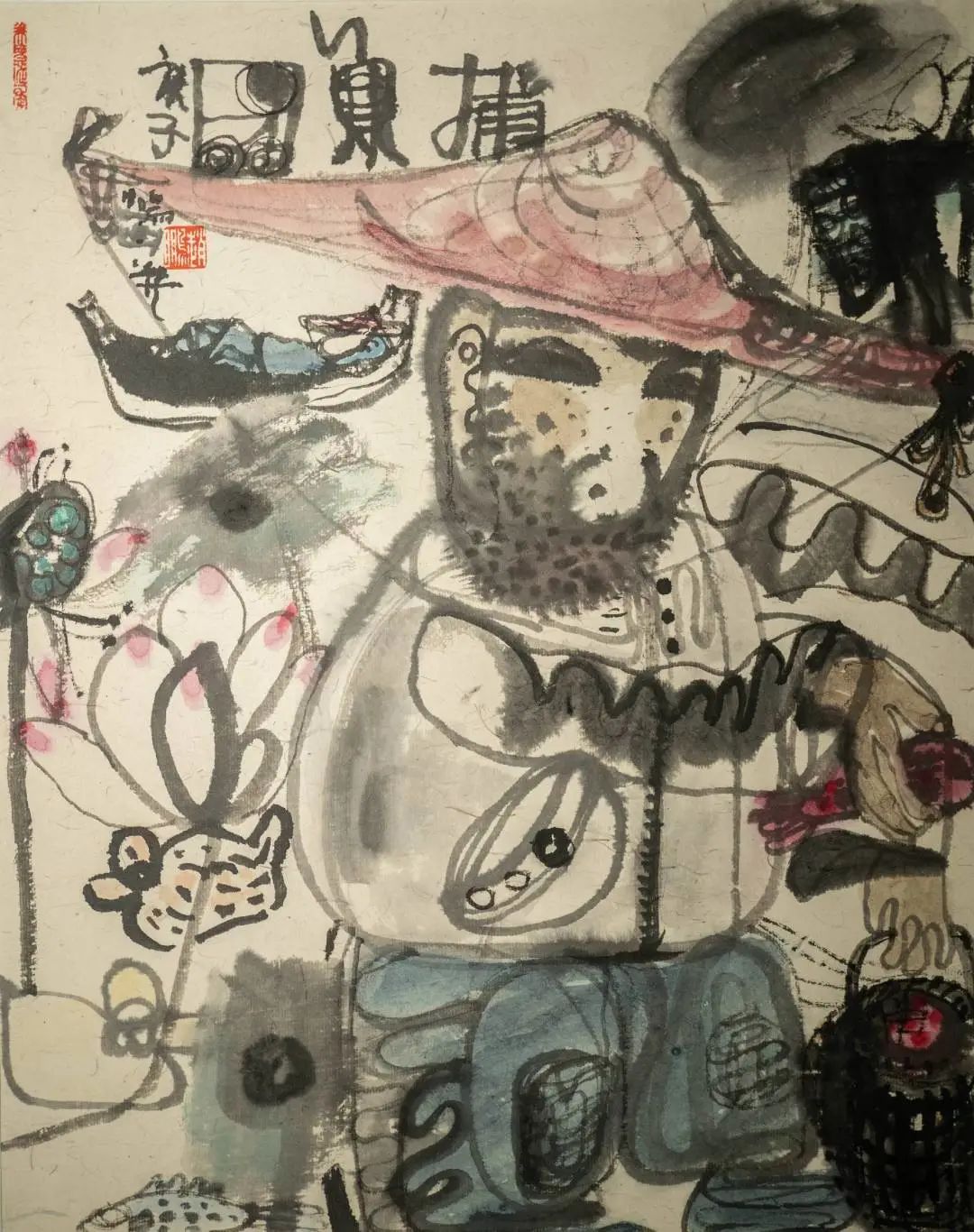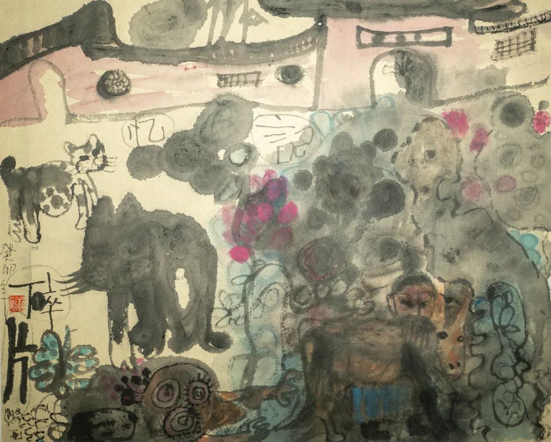 近年在传统图式传承与现代设计实践与教学相结合,并与个人早期的彩墨画技法结合,促成了这批水墨画的产生。