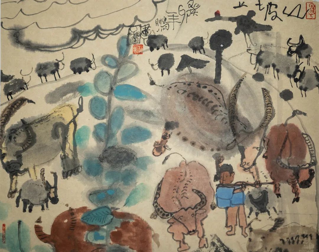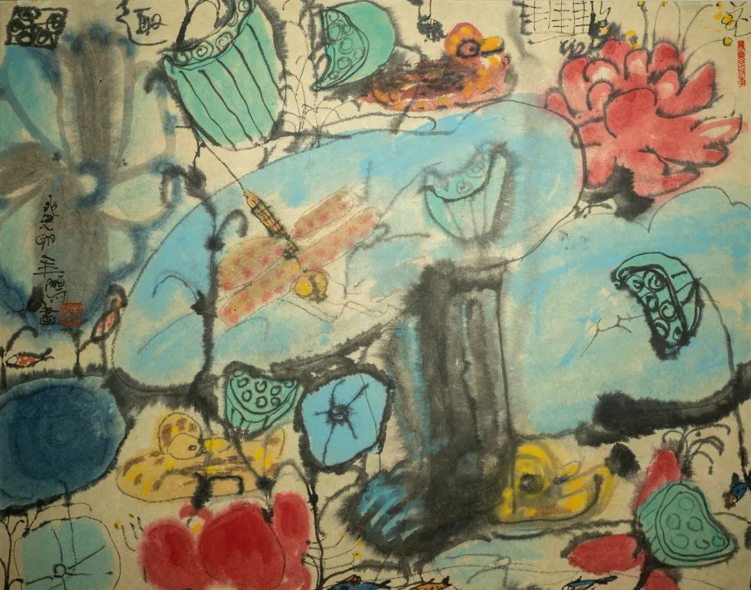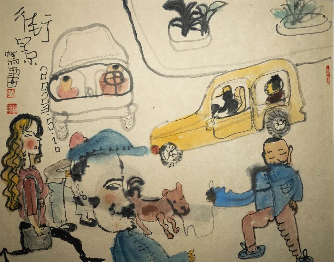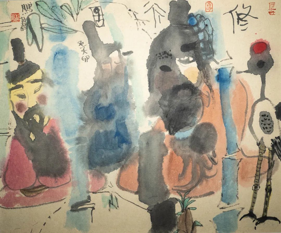 近年在传统图式传承与现代设计实践与教学相结合,并与个人早期的彩墨画技法结合,促成了这批水墨画的产生。