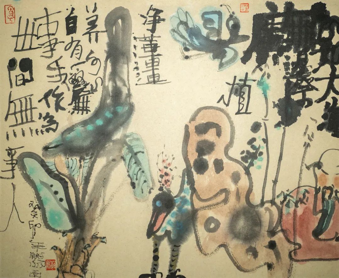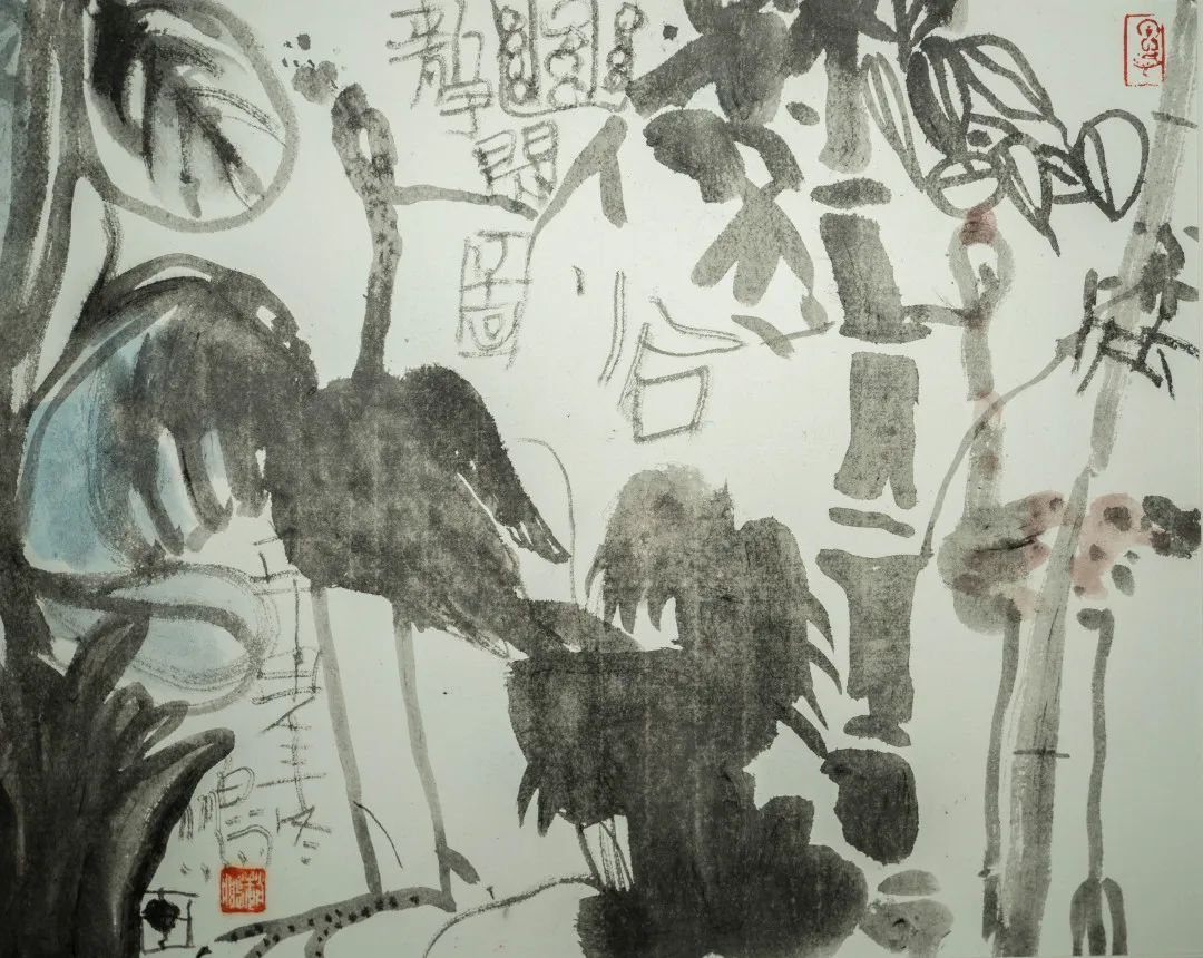 赵鹏在近年的水墨画创作实践中,创作法则上追求不似之似,注重绘画气韵美意境美的传达,由取形与离形至创作理念的意象造型观的确立,并在这一理念指导下,应用夸张、幻象、归纳、变形、添加与省略、分解与重组、错位、影像形等多元化的造型手法,来完成自己的水墨画创作,使作品表现出“韵外之致”、“味外之旨”、“象外之象”的审美效果。