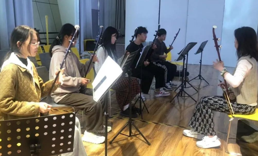 教学形式:不断发问,不断启发,不断鼓励......以教学实践为主导的“二胡教学+表演教学+舞台实践”三位一体沉浸式教学,达到1+1>2的育人效果。