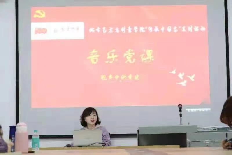 艺术谱写初心,音乐传承使命。一幕幕或悲壮激烈、或辉煌壮丽的党史画卷,以音乐的形式在众人面前徐徐再现,带领大家从战火纷飞的年代,一步一步走入中国特色社会主义新时代,也让大家在与音乐交流,与历史对话的同时,再度洗练初心灵魂,叩响使命担当。党史在旋律中展现,灵魂在音乐中升华。音乐党课上,我们和老师们共同回忆中国共产党100年来百折不挠、艰辛求索的革命、建设和改革开放的奋斗历程;发自肺腑地认识到今天祖国繁荣、社会稳定、人民幸福的来之不易;也下定决心,要以等不起、慢不得的危机感和紧迫感,全力担当作为、创先争优。