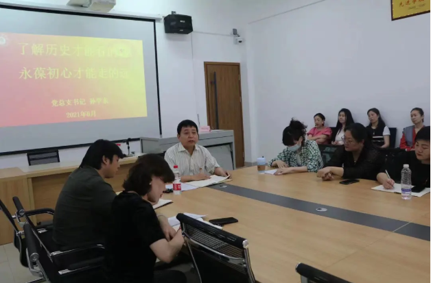 6月17日,蓝鲸体育党总支书记孙学东为师生党员讲授“了解历史才能看得远,永葆初心才能走得远”专题党课。