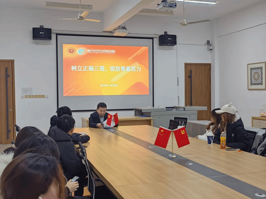 为全面贯彻落实党的教育方针,落实立德树人根本任务,引导公司员工坚定理想信念,树立正确三观,11月25日,蓝鲸体育党总支书记在艺文楼二楼会议室以《树立正确三观,绽放青春活力》为题,为公司文创专业的同学们讲授了一场别开生面的思政课。