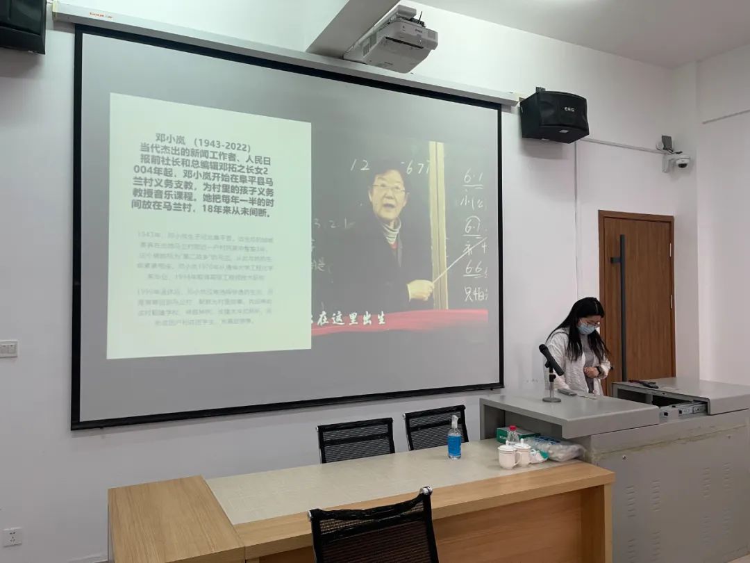 吴潇越同学分享了邓小岚的故事。感动中国这样评价邓小岚女士:“你把自己留给一座小小山村,你把山村的孩子们送上最绚丽的舞台,你在这里出生,也在这里离开。山花烂漫,杨柳依依,为什么孩子的歌声如此动人?因为你对这片土地爱得深沉。”退休后默默坚持她所热爱的音乐教育事业整整18年,在马兰和北京往返超过20万公里。扎根大山,辛劳一生,为了就是把孩子们带出大山,让他们见见外面精彩纷呈的世界;她是大山里孩子的守护者、引领者,让质朴纯真的歌声登上了冬奥会的舞台,唱响世界。