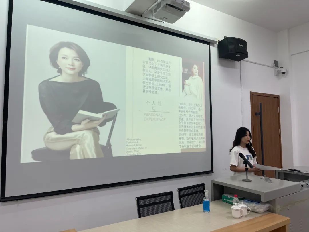 刘一诺同学分享了董卿的故事。她说,董卿是在时光中优雅盛放的花,她的温婉典雅、端庄大气、博学谦逊等等都是她能有今天成就的重要积淀。都说“腹有诗书气自华”,这句话在董卿身上体现的淋漓尽致,她曾这样说过,“读书让人学会思考,让人能够沉静下来,享受一种灵魂深处的愉悦。” 她能成为央视的“主持一姐”绝非偶然,而她让我们更加深刻的懂得了读书对于人们成长和气质塑造的重要性,让我们懂得学会思考,做有深度、有广度、有温度的女性。