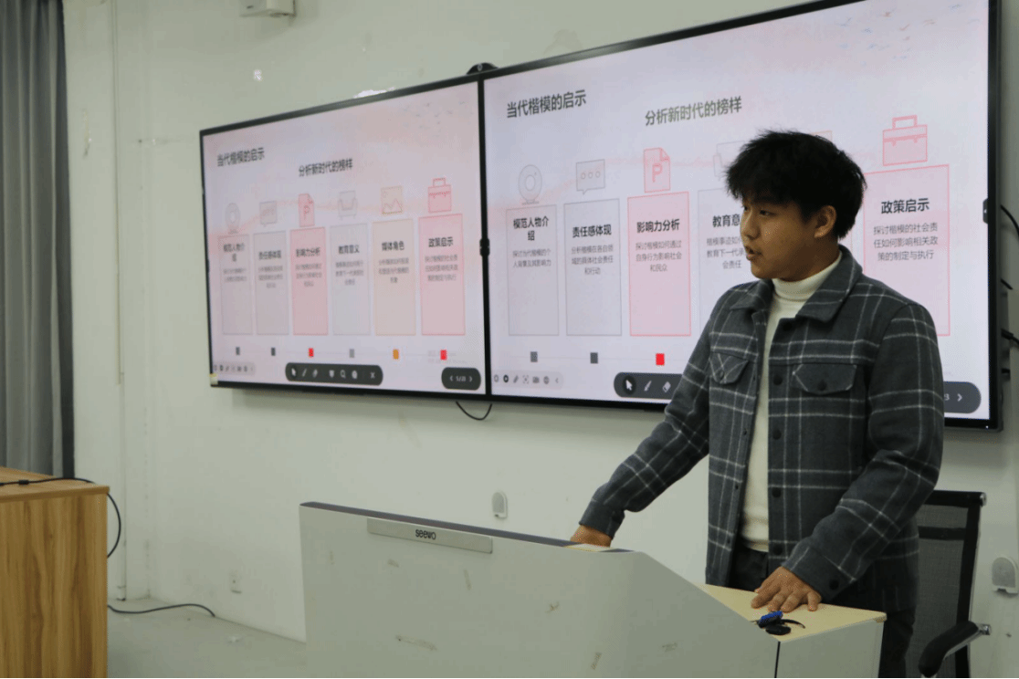 本次团课由2024级美育班团支书樊子墨担任主讲,他结合革命年代的历史事件,向同学们阐述了在民族脊梁的社会责任中,个体奉献与民族复兴的重要性。又结合当今的我们,作为新时代的民族脊梁,要有怎样的社会责任。在团课中,同学们深入了解了中华民族的历史和文化,认识到中华民族自古以来就是一个勤劳勇敢、自强不息的伟大民族。正是这些优秀的民族品质,支撑着我们不断前行,成为国家的脊梁。同时,我们也学习了国家的发展历程和取得的辉煌成就,深刻体会到民族脊梁在国家发展中的重要作用。