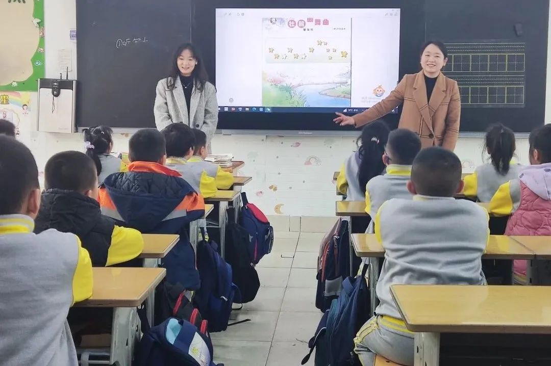 2021级和2022级音乐美育系的同学,乘坐大巴车到达了长清区平安中心小学。启动仪式过后,10名同学分配到了各个班级,2名同学负责社团,按照提前准备好的教案,开启了支教第一课。