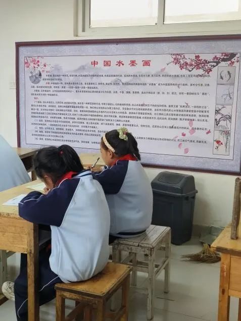 接下来,我们来到了第二个教室,老师的话语亲和而细腻。伴随着沙沙的写字声,孩子们时不时双手撑着脑袋,目不转睛的听讲,生怕错过任何一个要点。教与学的和谐画面,让人不由得感叹,这便是艺术的力量吧。