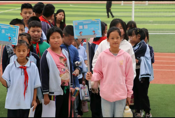 在操场上,同学们根据各自的喜好排成小队,在志愿者的引领下,跟随着指示牌的引导下满怀期待地走向了各自的兴趣教室,开启了今日的学习之旅。同学们在队伍中欢快地舞动,脸上洋溢着兴奋的笑容,他们胸前飘动的红领巾,像青春的火焰在风中跳跃,诉说着他们的热情与活力。