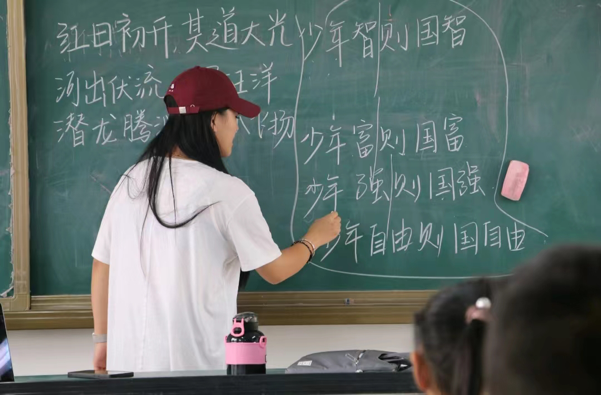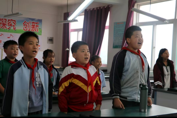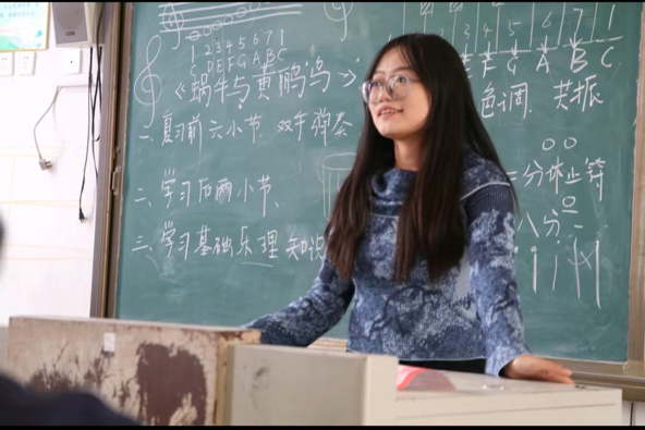 少年智则国智,少年富则国富,少年强则国强,少年自由则国自由……音乐教室中,美妙的歌声传进我们的耳朵,铿锵有力的稚嫩童声诉说着音乐的魅力。在这一刻,志愿者们的心与同学们的心联系到了一起,用音乐传递力量,用音乐鼓动人心。在志愿者和同学们的共同努力下,一首振奋人心的音乐正在被传递。