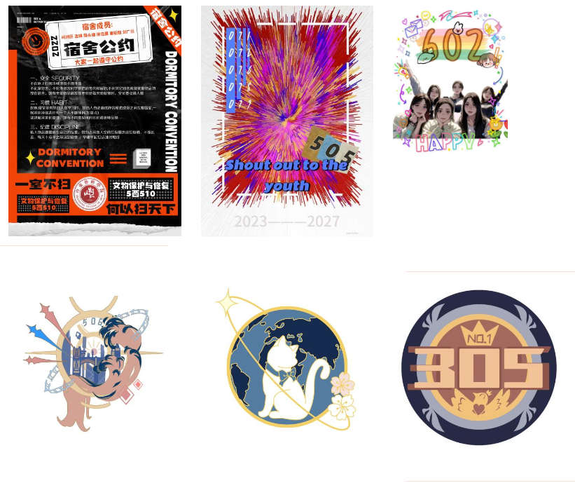 在舍标舍徽及海报设计评比过程中,各宿舍结合专业特色与寝室文化进行设计,充分展现了同学们的想象力和创新能力,展现了积极向上、活力四溢、团结和谐、个性鲜明的宿舍文化氛围,得到了评审们的一致好评。