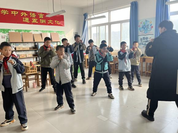 武术课上,志愿者老师带领着小朋友们练习武术动作。经过了几个周坚持不懈的学习,他们已经可以连贯做出一整套完整的武术动作。课堂氛围也十分活跃,每个人的脸上都洋溢着喜悦的笑容。