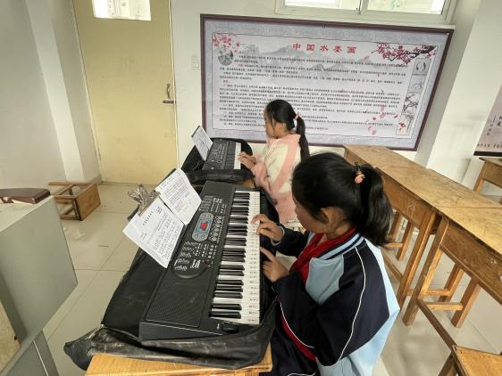 电子琴课上,经过了一周练习的小朋友们对电子琴的学习热情飞速增长,明亮眼眸中装满的是对电子琴学习的求知欲。在志愿者老师的帮助下,小朋友们的弹琴水平不断提升,美妙的音符在指尖下起舞。