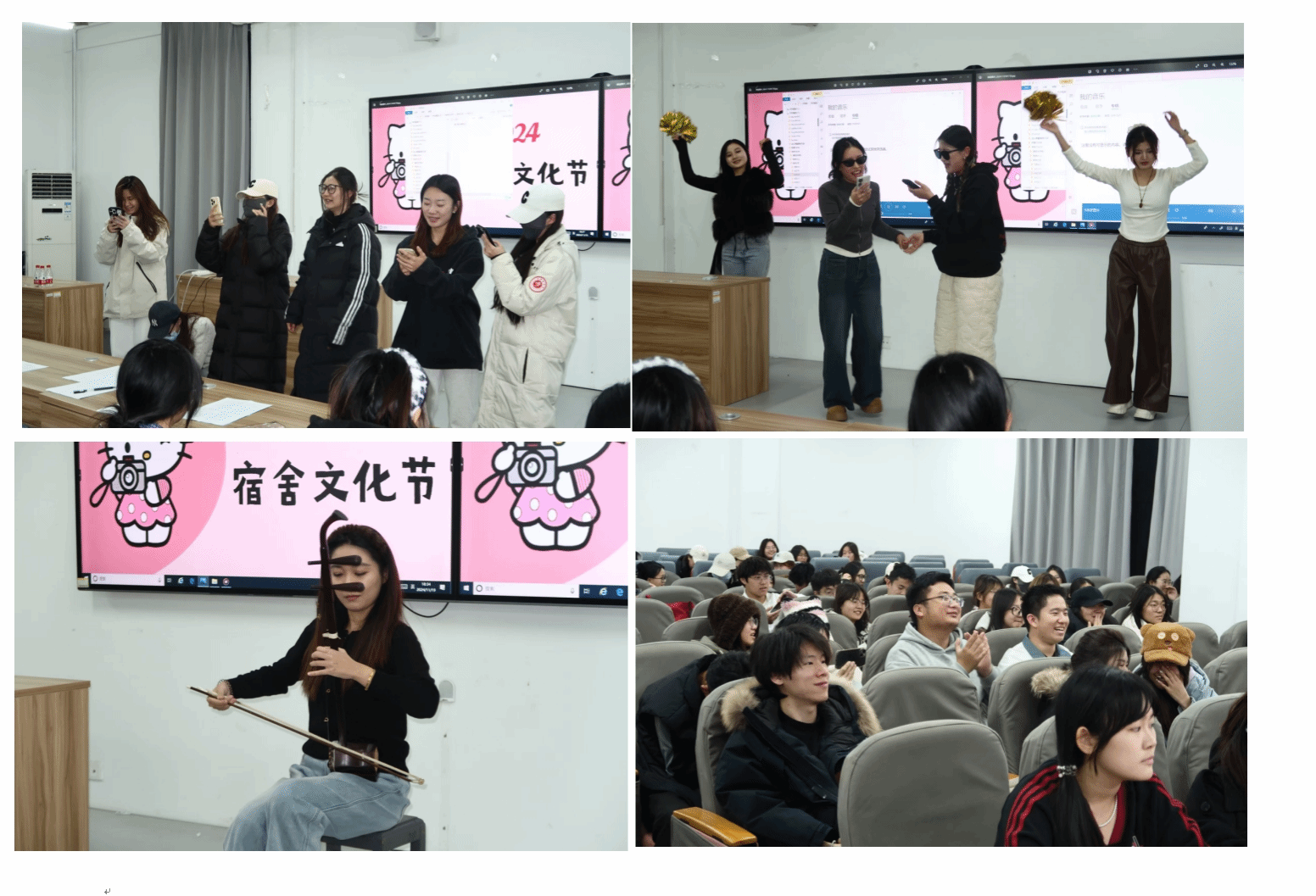 宿舍才艺大赛和vlog拍摄比拼中,同学们的表演和作品各具特色,展现了青春的活力和专业的魅力,赢得了评审和观众的热烈掌声。