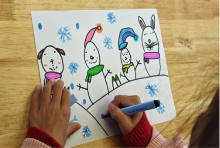 小朋友们围坐在精心布置的画桌前,眼睛里闪烁着对世界的好奇与期待。蜜蜂公益的志愿者们,用他们灵巧的双手和温暖的心,引导着孩子们用画笔描绘出心中的雪人形象,当小朋友们的小手握住画笔,在画纸上轻轻勾勒,一个个憨态可掬的雪人就跃然纸上。这不是简单的绘画,而是一次心灵的触碰,是孩子们纯真梦想与冬日奇景的美妙交融。