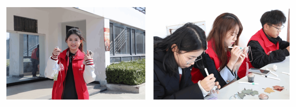 在树叶签到区,参与者将飘落的树叶化作时光信笺,以指尖的温度在叶片上书写姓名。这些承载着春意的自然书签与操场新发的枝芽遥相呼应。每片叶子都如绿色身份证般记录着每位参与者的环保承诺。