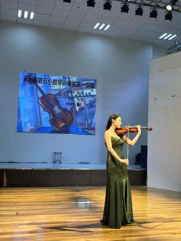 李苏格:本学期专业课的学习让我学到了更多的小提琴演奏技巧和情感表达方式,体会到音乐的魅力和挑战。通过不断的练习和打磨,我逐渐领悟到音乐表达的艺术和技巧,从磕磕绊绊的视奏到最后与钢琴伴奏在台上完整呈现一首曲子,我不仅仅收获了琴曲的熟练度和技巧的运用,每次的进步都让我更加自信,也更加热爱这门乐器。通过本学期课程,老师传递了美的价值,激发了我的创造力和想象力,让我在欣赏和创造中感受到美的力量。专业课的学习让我收获满满,美育技能课程不仅是对艺术的传授,更是对心灵的滋养,它让我在美的熏陶下,形成更加健全的人格和独特的个性。期待未来能继续在音乐的道路上探索前行。