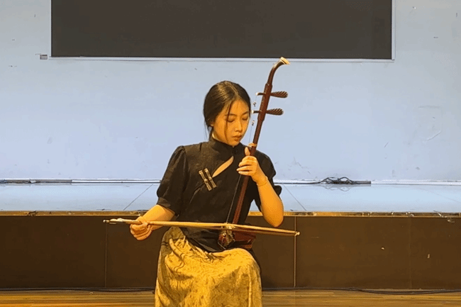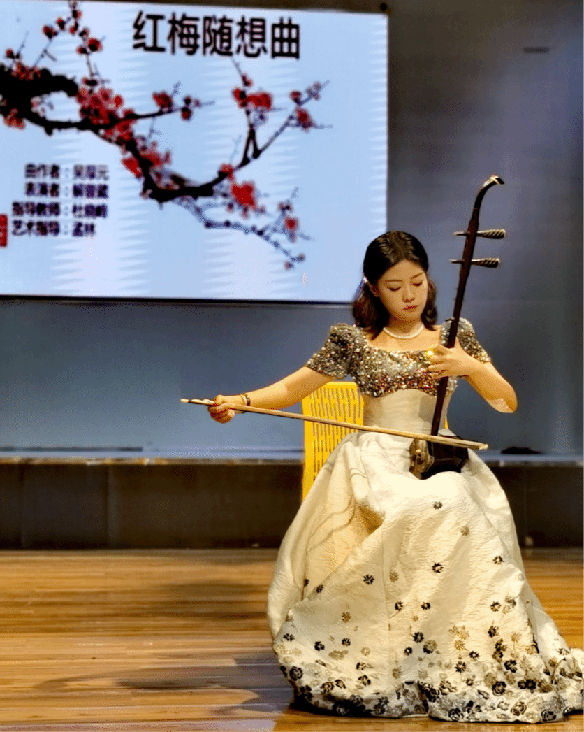 连茹月:通过这学期的学习,我深刻认识到音乐作品的理解与分析对于演奏的重要性。我开始阅读乐谱理解作曲家的意图,感受音乐的节奏、旋律。在实际演出积累了丰富的舞台经验。这些经验让我更加自信和从容地面对各种演出场合,也让我通过这些努力,从而提升自己的演奏水平。通过不断学习和探索,我不仅提高了自己的音乐素养和演奏技巧,还深入了解了传统文化和音乐精神。我将继续努力学习和探索二胡艺术,为传承和发展传统文化贡献自己的力量。