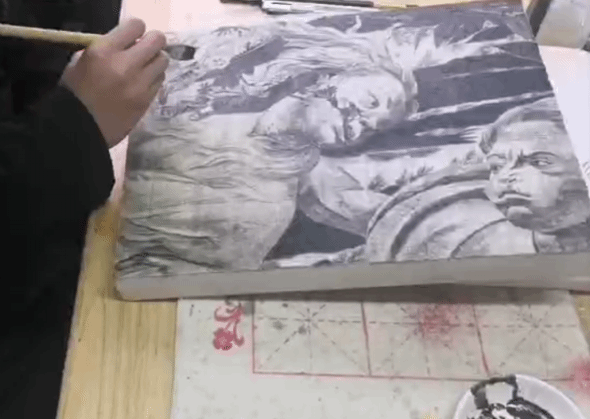 作者:刘佳佳 《汉画像石》 尺寸:50*60cm 布面油画