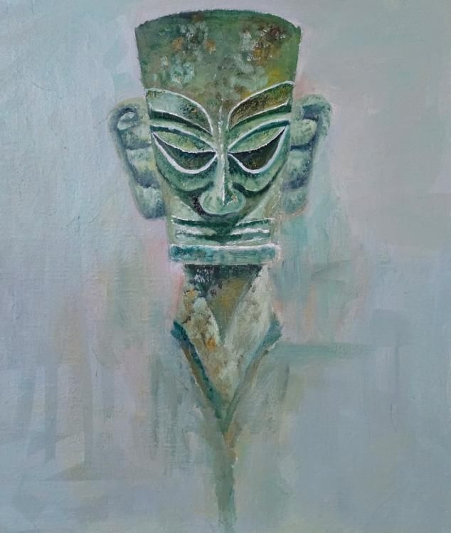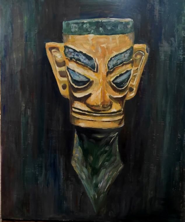 作者:徐倩 《三星堆青铜面具》尺寸50*60cm 布面油画