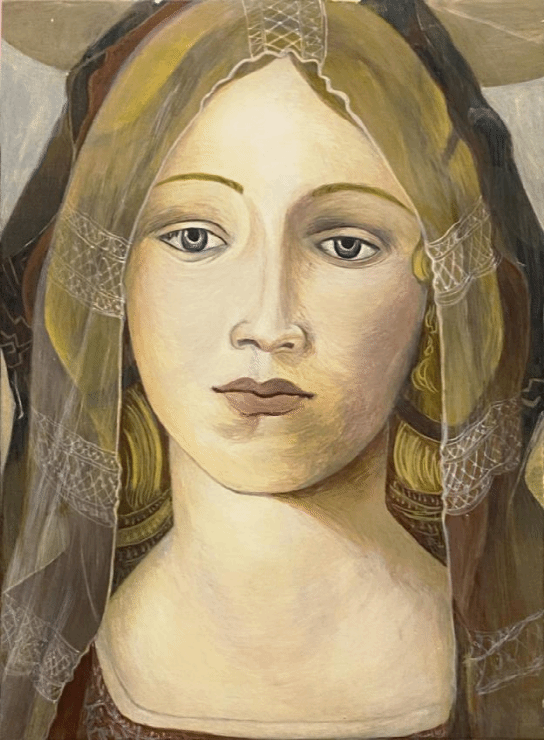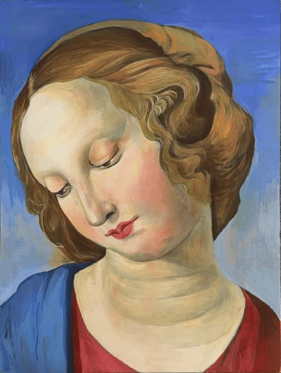 作者:张皓然 波提切利《女孩肖像》复制作品 水性坦培拉 尺寸:30*40cm