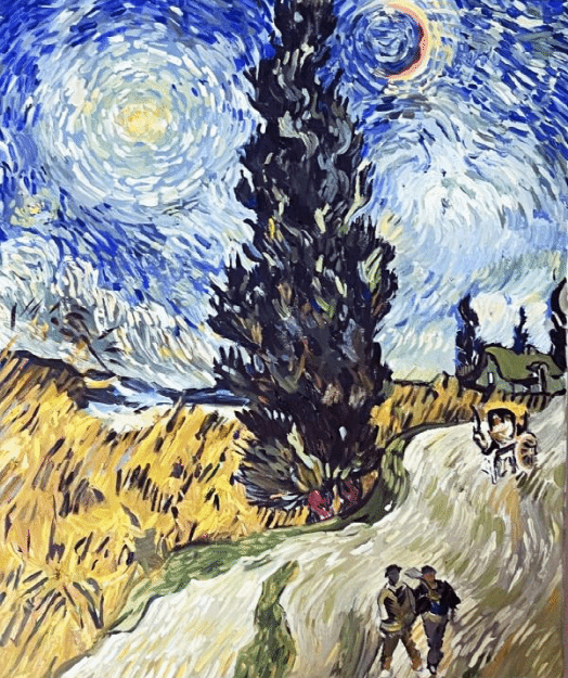 作者:闫鸿历 梵高 《有丝柏的道路》复制作品 尺寸:50*60cm 布面油画