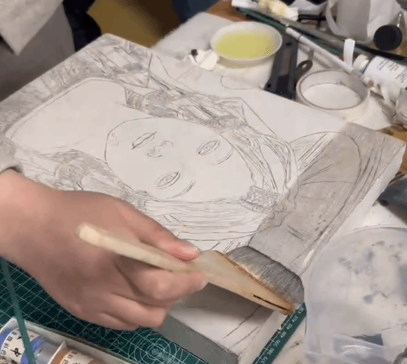 随后,同学们学习了油性坦培拉的制作与临摹。油性坦培拉作为一种古老的绘画技法,具有独特的色彩表现力和持久性。在这一阶段,同学们不仅掌握了坦培拉的制作过程,还通过临摹经典作品,深入理解了这种技法的应用和效果。