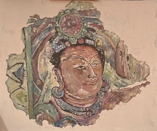 作者:李嘉一《克孜尔石窟壁画》尺寸:50*60cm 布面油画