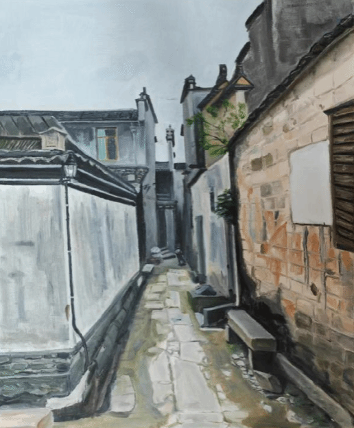 作者:李欢 《宏村小巷》尺寸:50*60cm布面油画